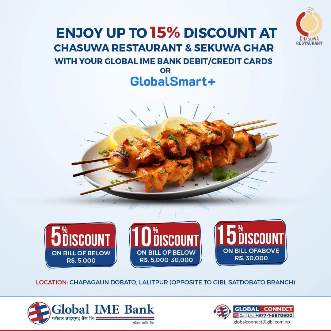 Get Exclusive Discounts upto 15% on payments with Global IME Bank Cards or GlobalSmart+ 🏷️